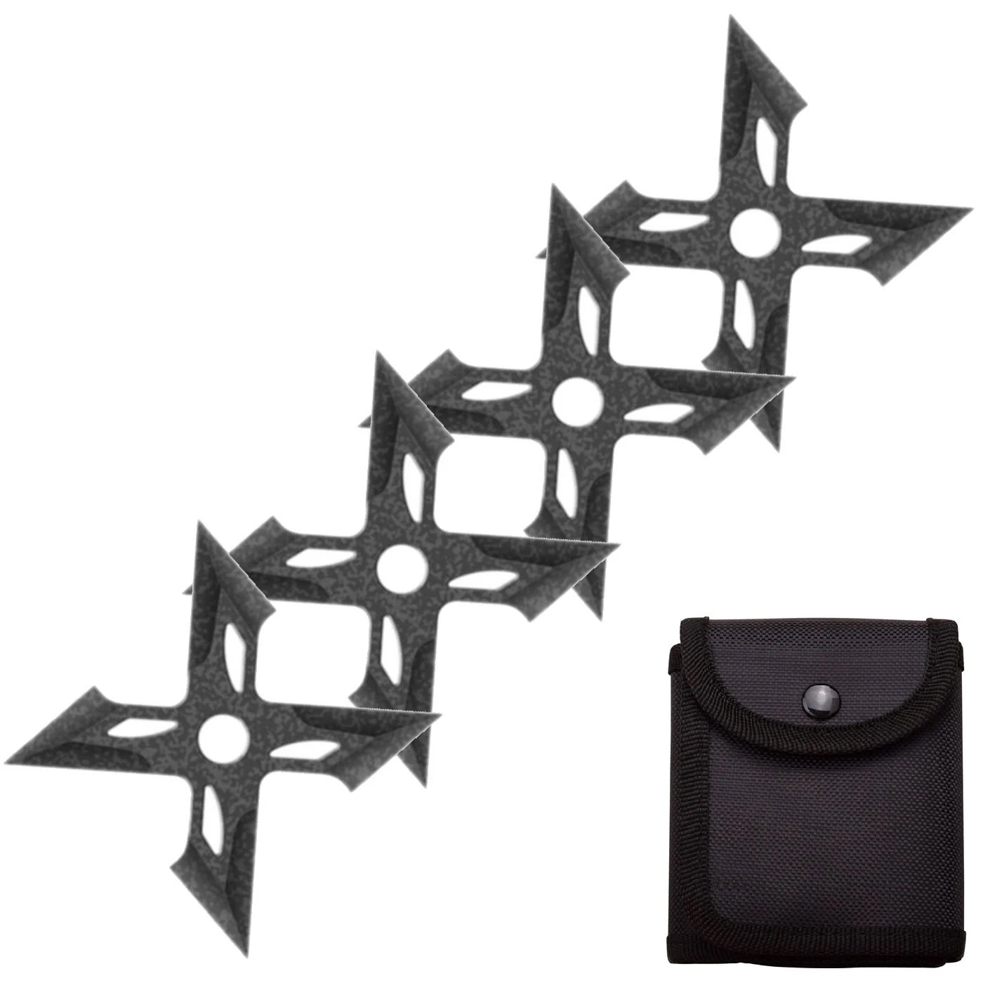 4 Pc Stonewash Finish Four-Pointed X Throwing Ninja Stars Shuriken