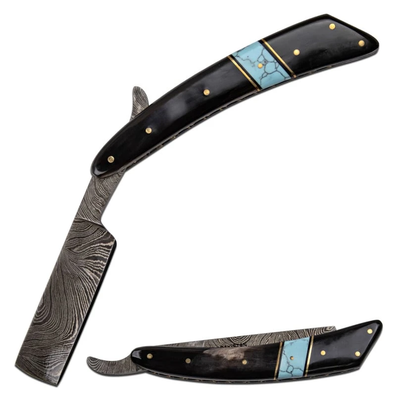 Elk Ridge folding razor knife with Damascus blade. The knife comes in new box.