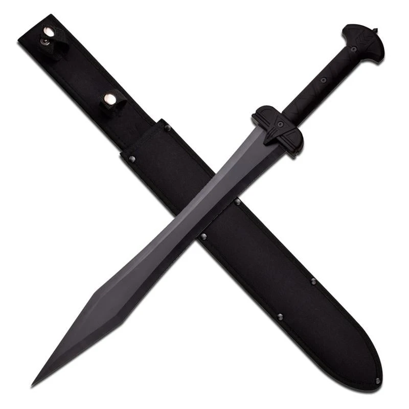 Fantasy Sword 24 Inch Overall Length. 3MM Thick, 16.25 Inch Black Finish Stainless Steel Blade. Black Nylon Fiber Handle. Includes 600D Nylon Sheath