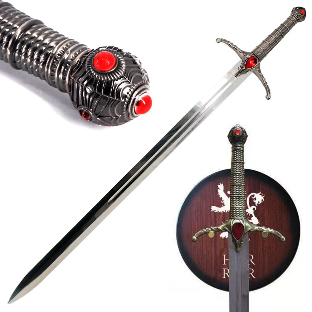 Details matter very much in this case – but not to us here. It features a hilt with Bronze plated cast metal with faux jewels. This beautiful display sword comes included with a wooden display wall plaque.